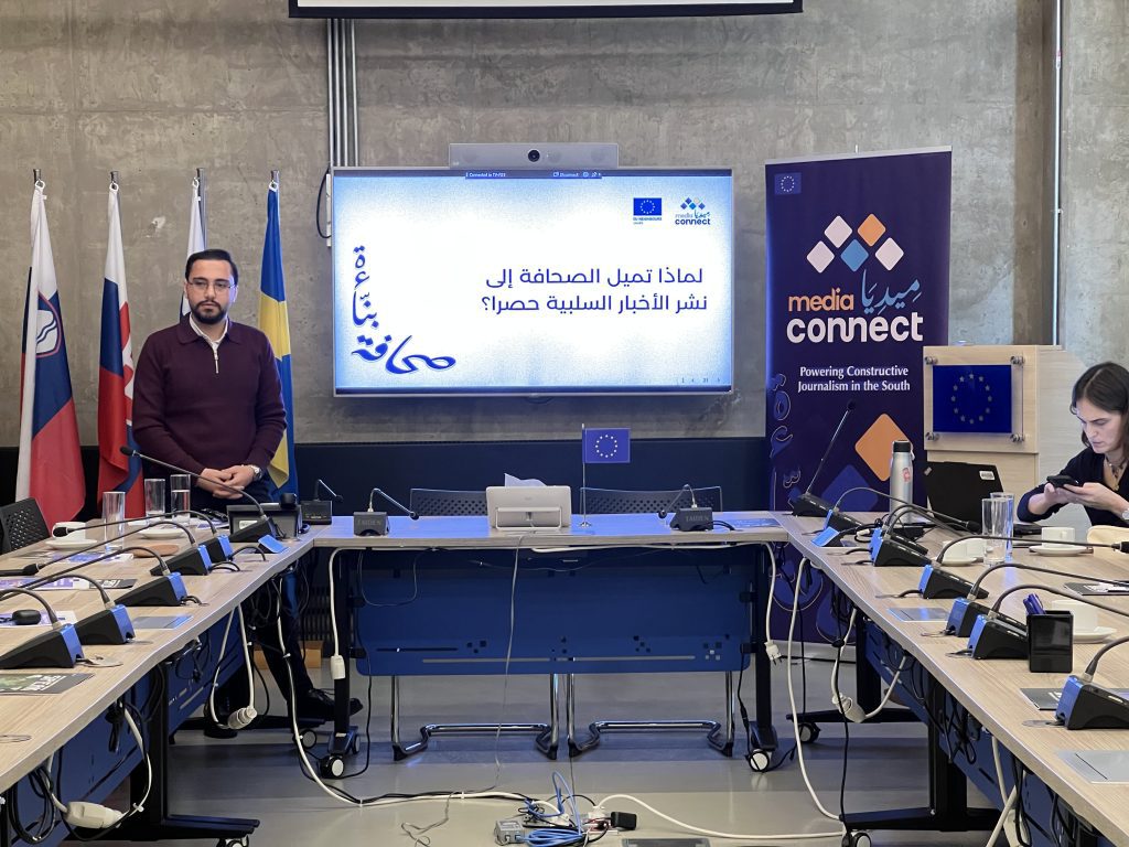 The session presented constructive journalism as a methodology that does not ignore negative news but rather puts it in a broader context. Through a practical example and exercise in analyzing a journalistic story, participants discussed how to turn traditional coverage into a constructive story. Four of them followed the discussion more deeply with the trainer after the session, indicating their interest in transforming the methodology from a theoretical concept into a tool that can be used on a daily basis.