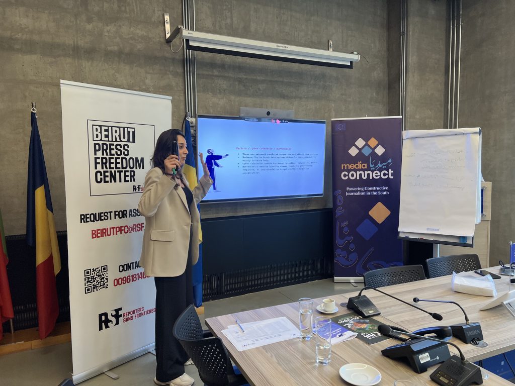 As we moved from the field to the digital space, the final session covered the topic of digital safety, led by Iman Al-Abed of Reporters Without Borders’ Beirut Center for Press Freedom, who also participated in the event. She addressed the growing digital threats facing women journalists, and provided practical tools for managing passwords, enabling two-factor authentication, splitting accounts, and dealing with cyberbullying. Al-Abed believes that women journalists are often subjected to double digital targeting in order to silence them, stressing that digital security is “not a luxury, but a prerequisite,” and that protecting women journalists digitally is in essence a protection of press freedom itself.